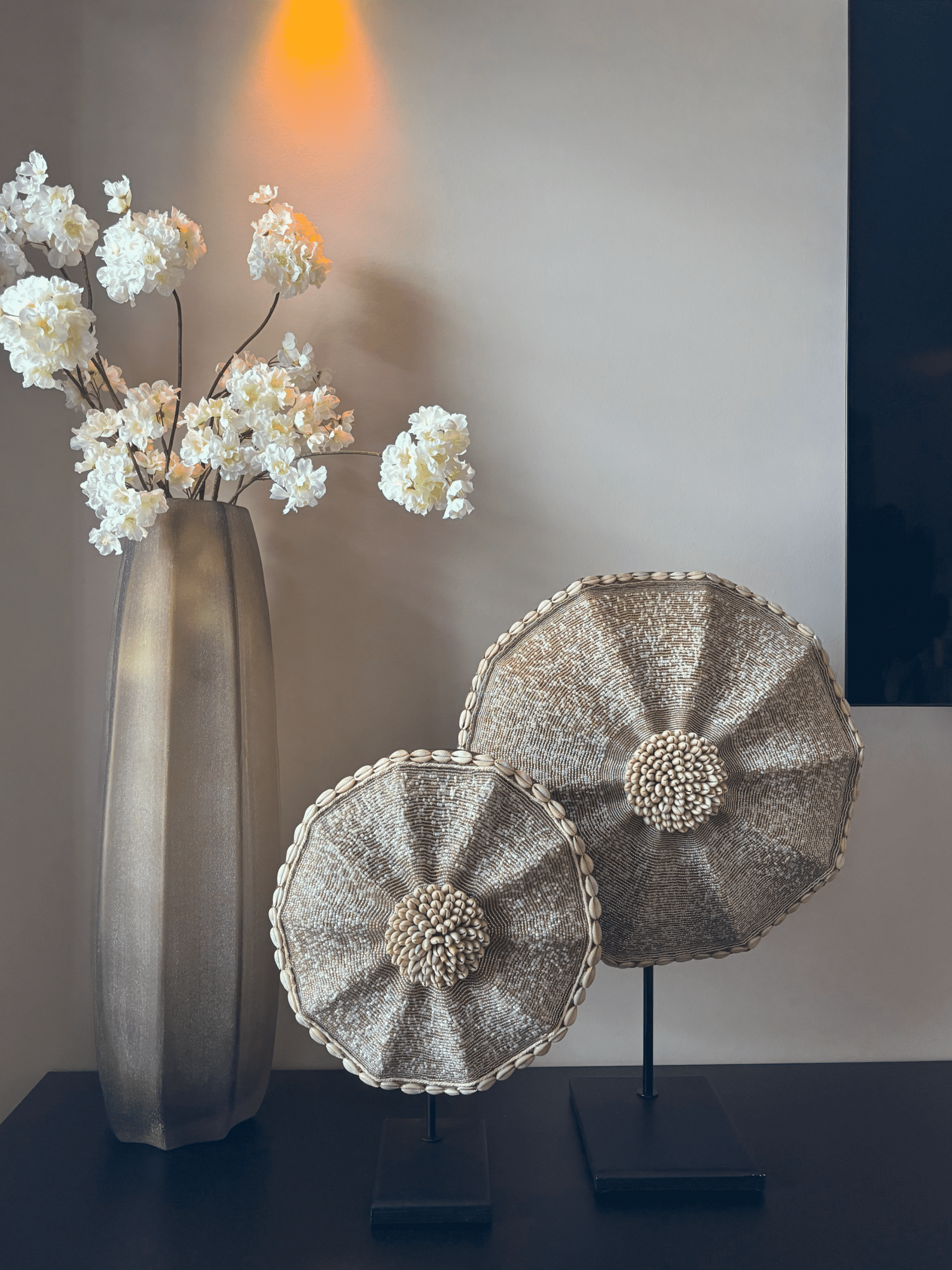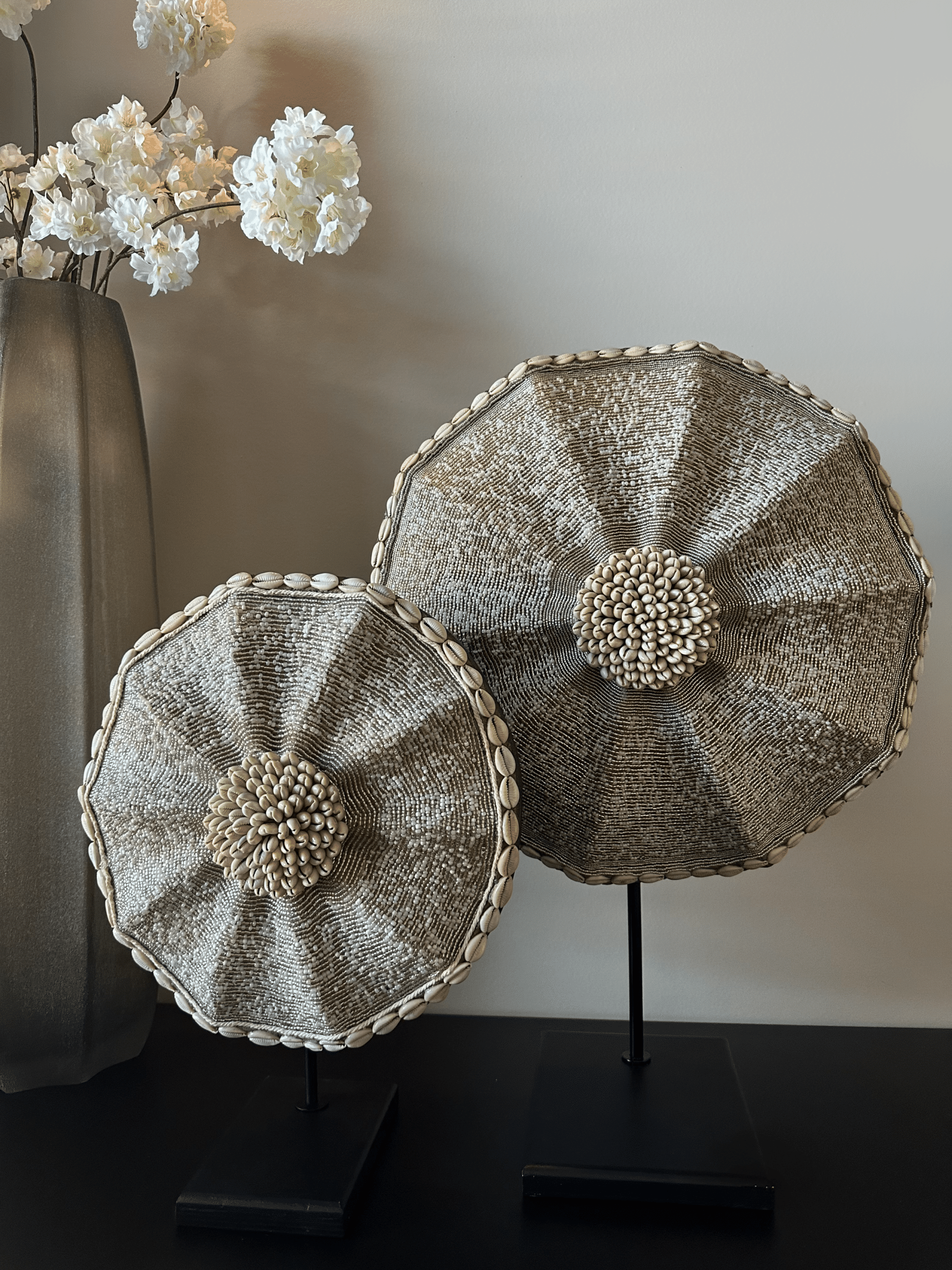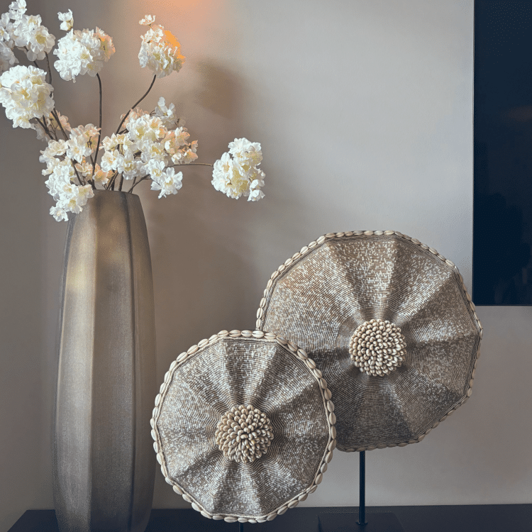 Le Bouclier Perlé exclusif – Bianca (40 cm) est le résultat d’une collaboration unique entre ByLebon et Bianca (@huisje.in.parkzijde). Tout comme les variantes de 30 cm et 50 cm, ce bouclier a également été fabriqué avec une grande attention aux détails par de véritables artisans au Cameroun. Les fines perles de verre et les subtiles nuances de blanc et d’ivoire créent une douce lueur et s’intègrent parfaitement dans différents styles d’intérieur. Avec votre achat, vous soutenez le commerce équitable et de meilleures conditions de vie pour les artisans au Cameroun.
