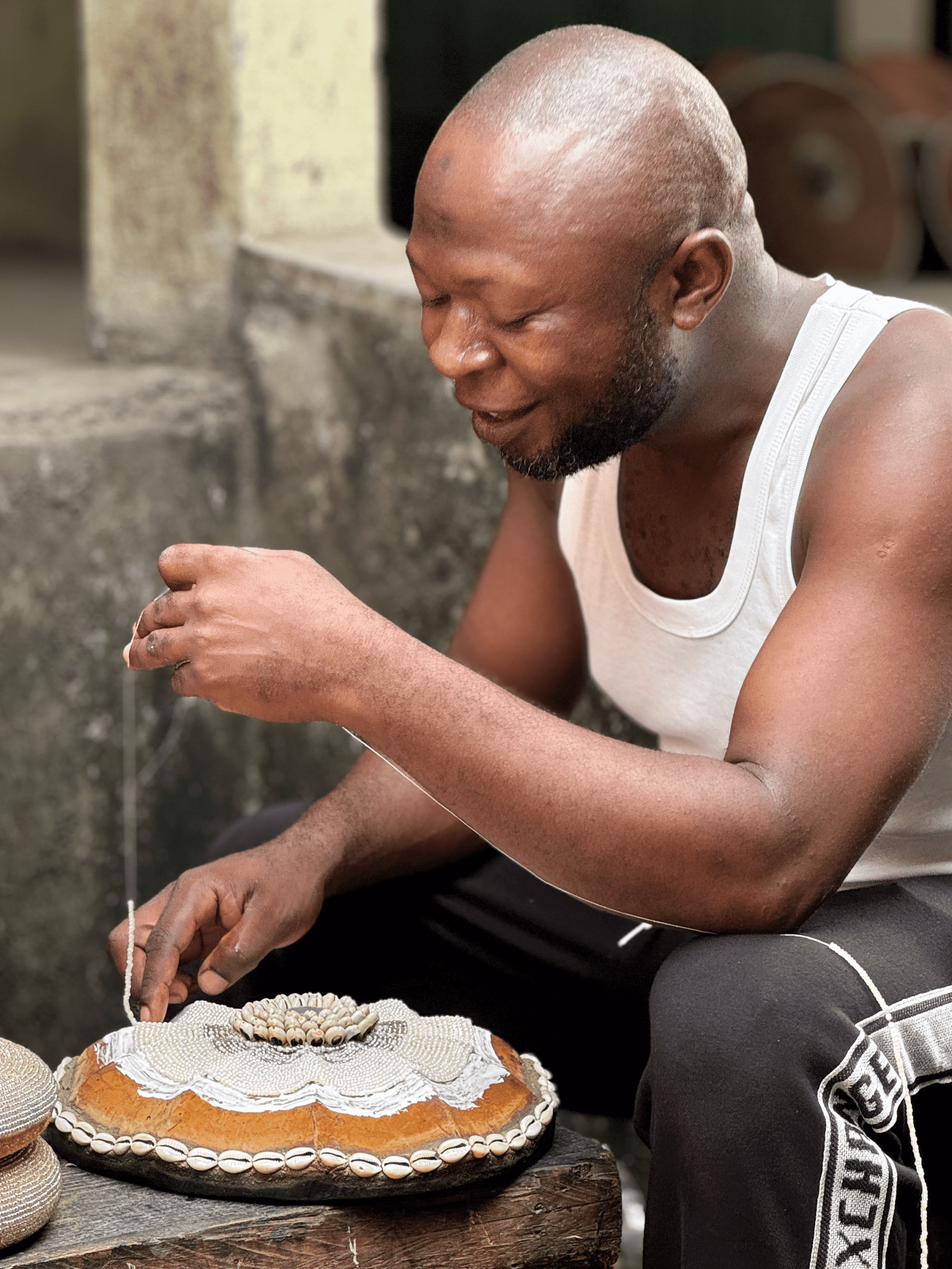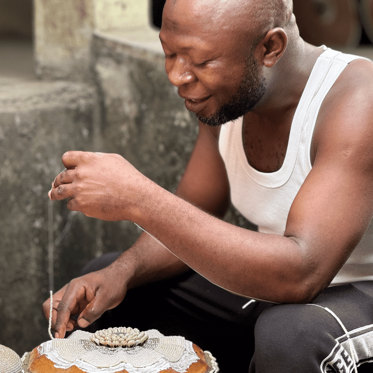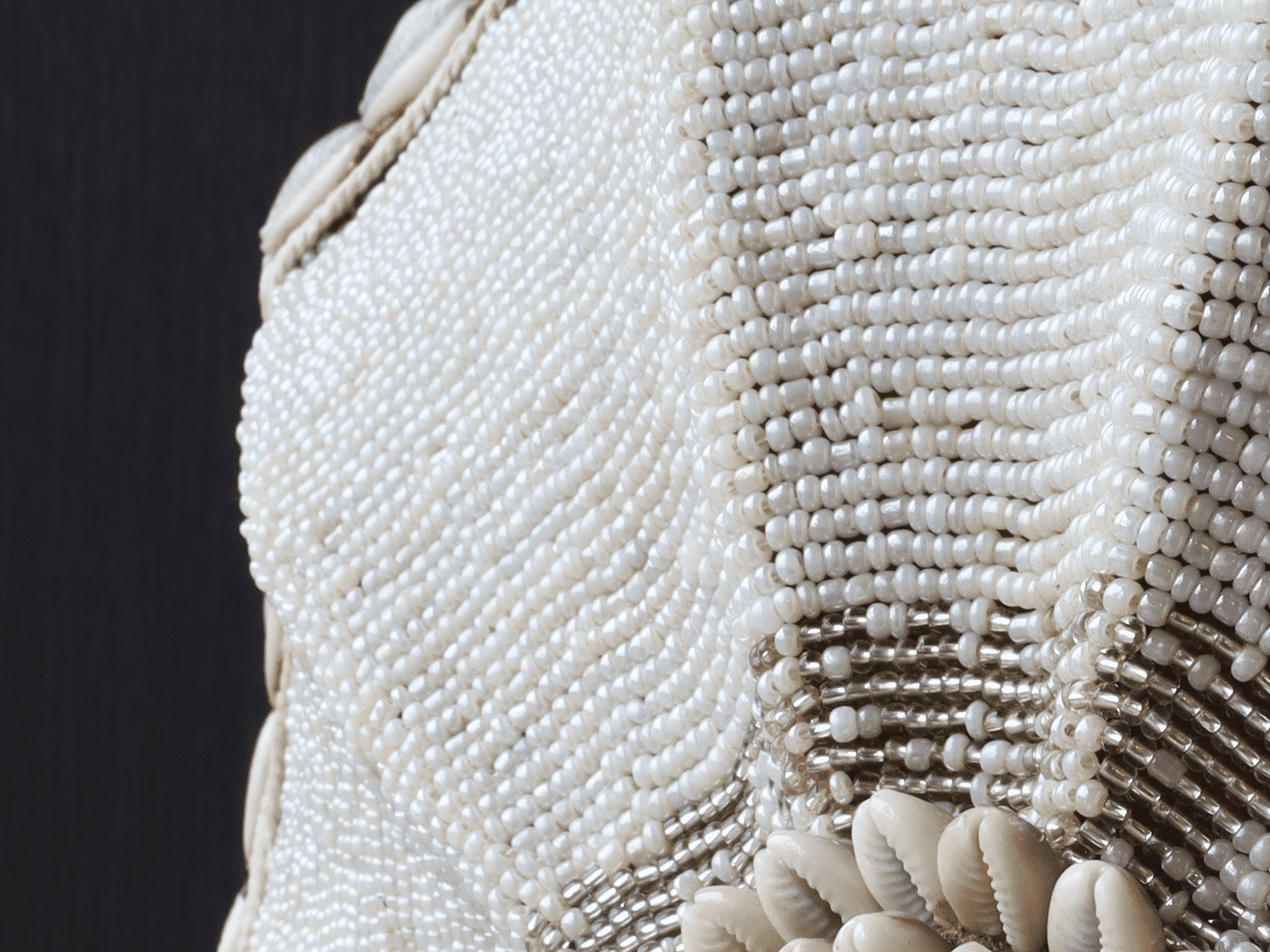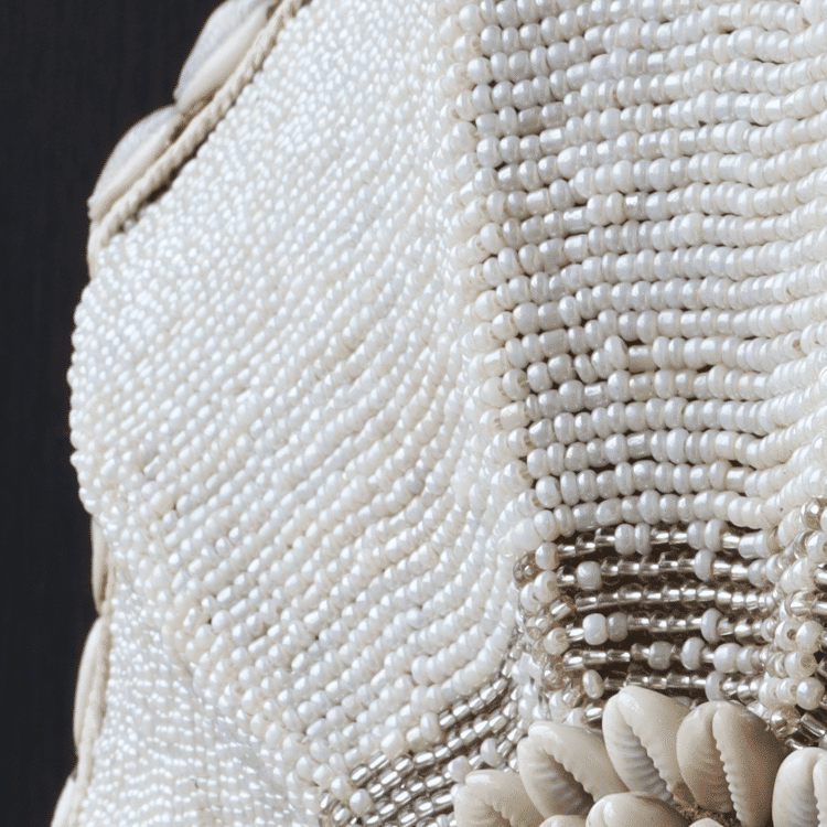 Bouclier Perlé – La Beige (30 cm) est conçu par Larissa (@larissa.interior) et fabriqué à la main par Aboubaka du Cameroun. Il allie une esthétique paisible à un savoir-faire traditionnel. Livré avec son socle.