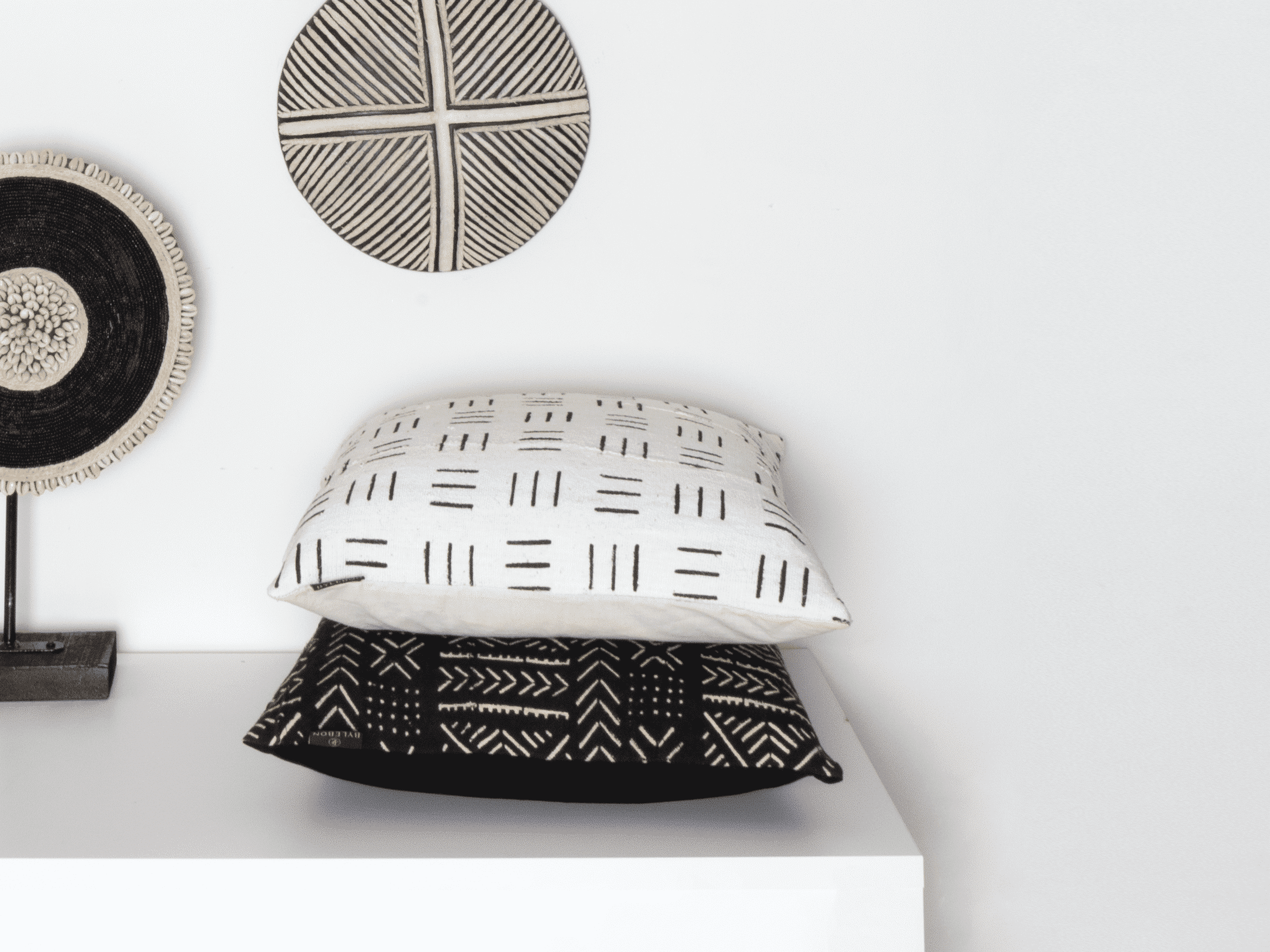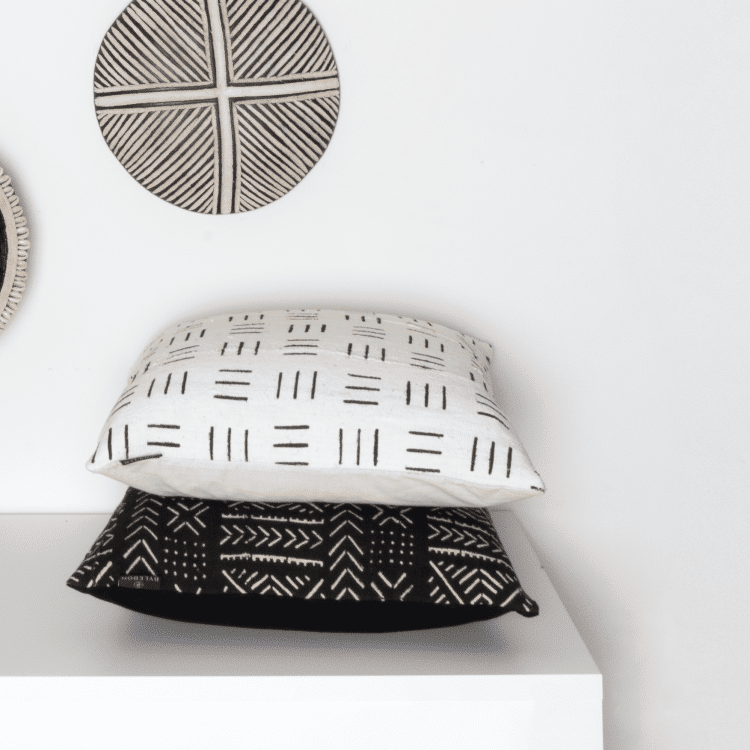 Ce coussin fait main est créé à partir du tissu authentique Bògòlanfini du Mali.