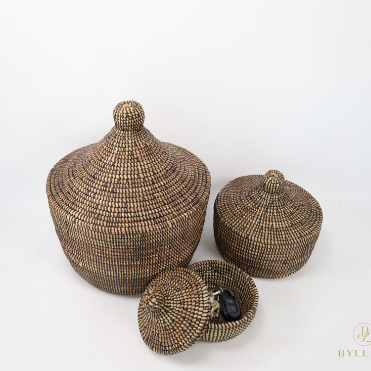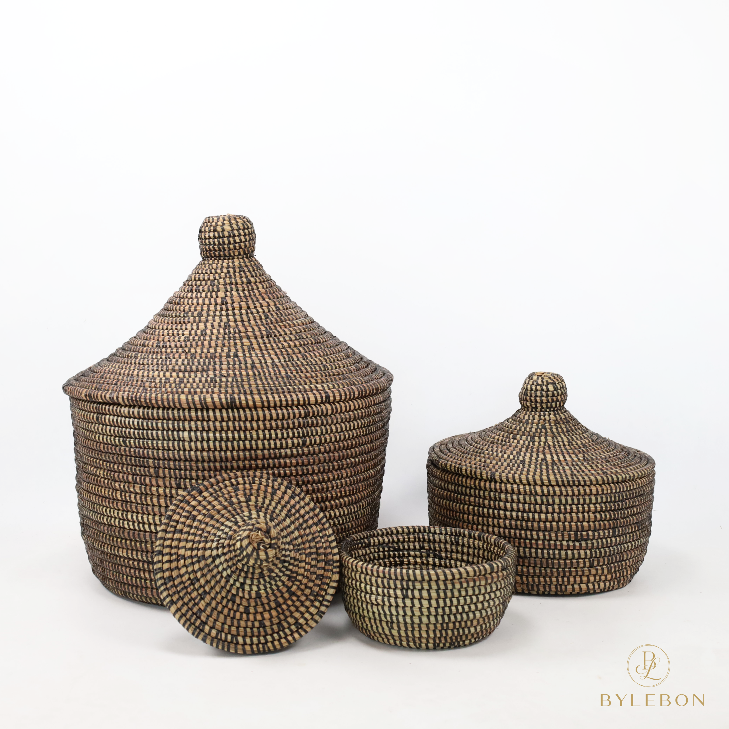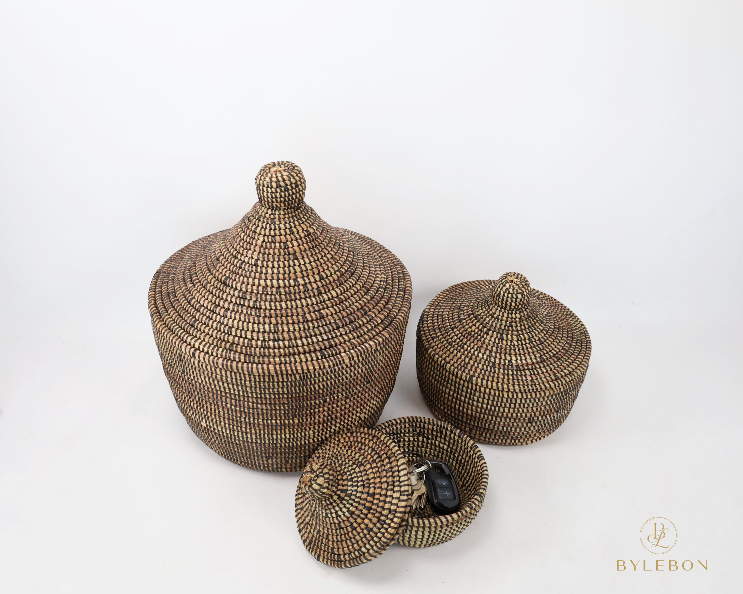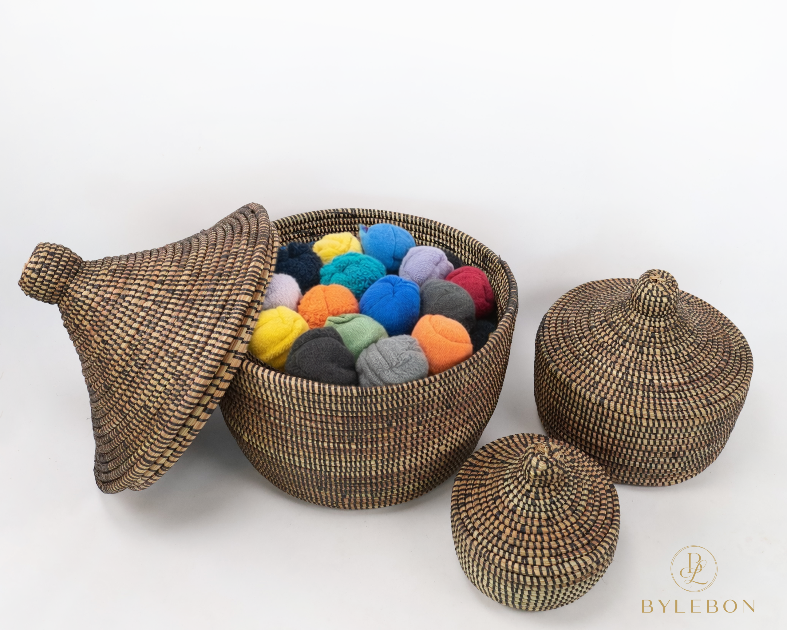 Les paniers sont légers mais solidement tressés, ce qui les rend faciles à déplacer et adaptés à un usage quotidien. En raison de leur caractère artisanal, chaque exemplaire est unique (de petites variations de forme et de couleur sont inhérentes au travail manuel).