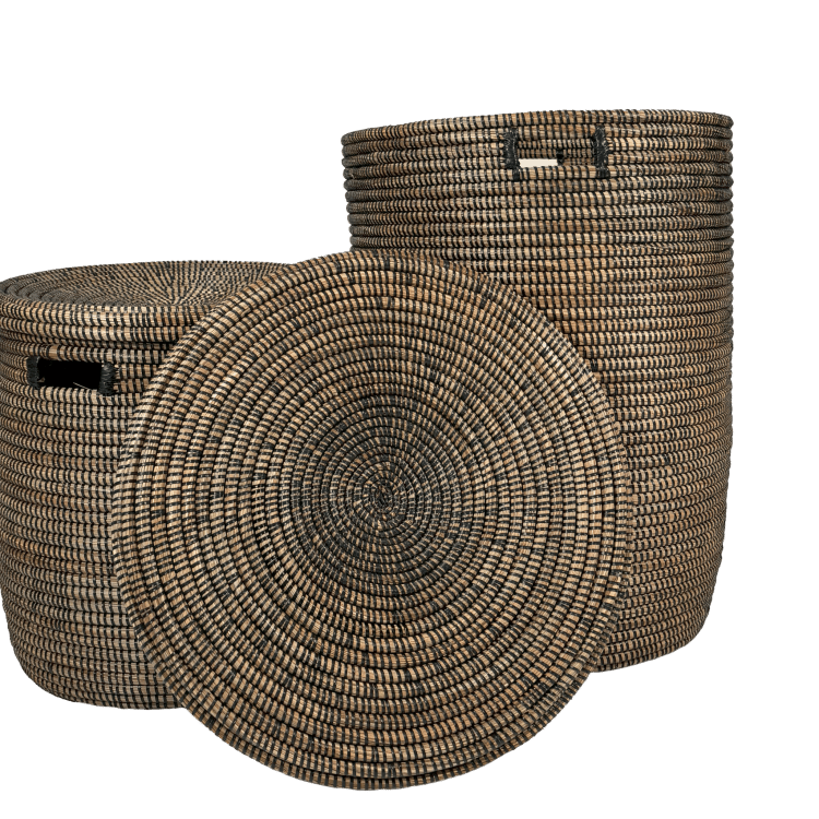 - Le grand panier (57 cm de haut, 40 cm de diamètre) et le petit panier (37 cm de haut, 35 cm de diamètre) présentent une élégante couleur foncée.
