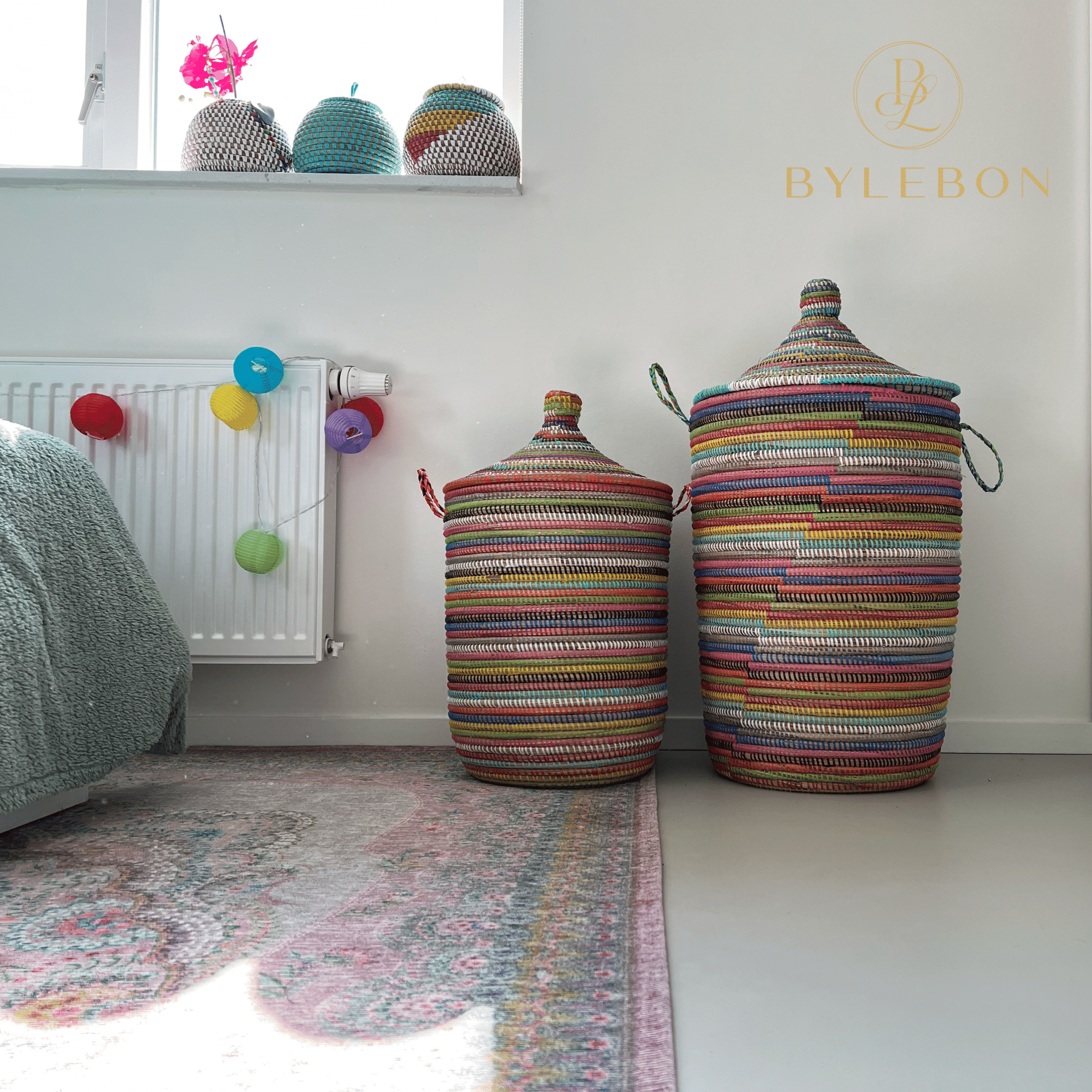 Cet ensemble de paniers tajine – Arc-en-ciel égaye n’importe quelle pièce. Apportez une touche d’ambiance supplémentaire à votre salle de bain, chambre ou chambre d’enfant, ou encore à votre salon, avec ces paniers colorés. Utilisez-les comme panier à linge ou pour ranger vos vêtements propres, couvertures ou autres affaires.