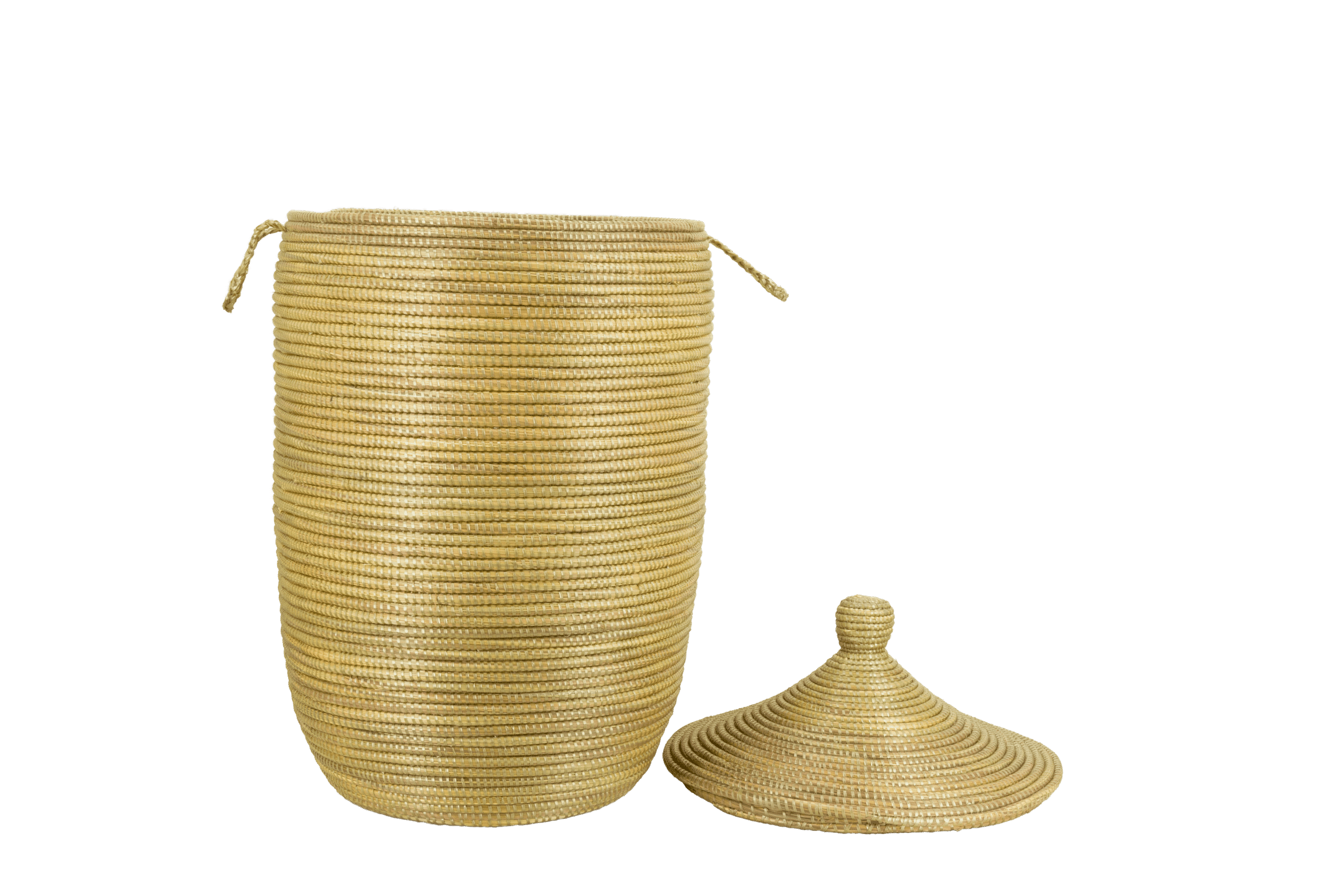 Fabriqué à la main en roseau de couleur claire avec des liens dorés. Un ensemble magnifique et unique.