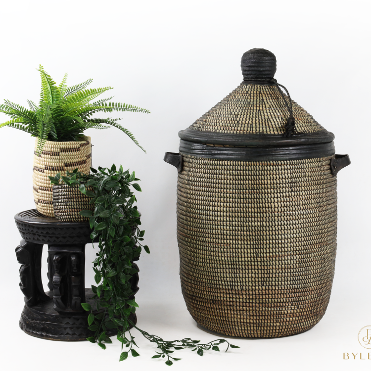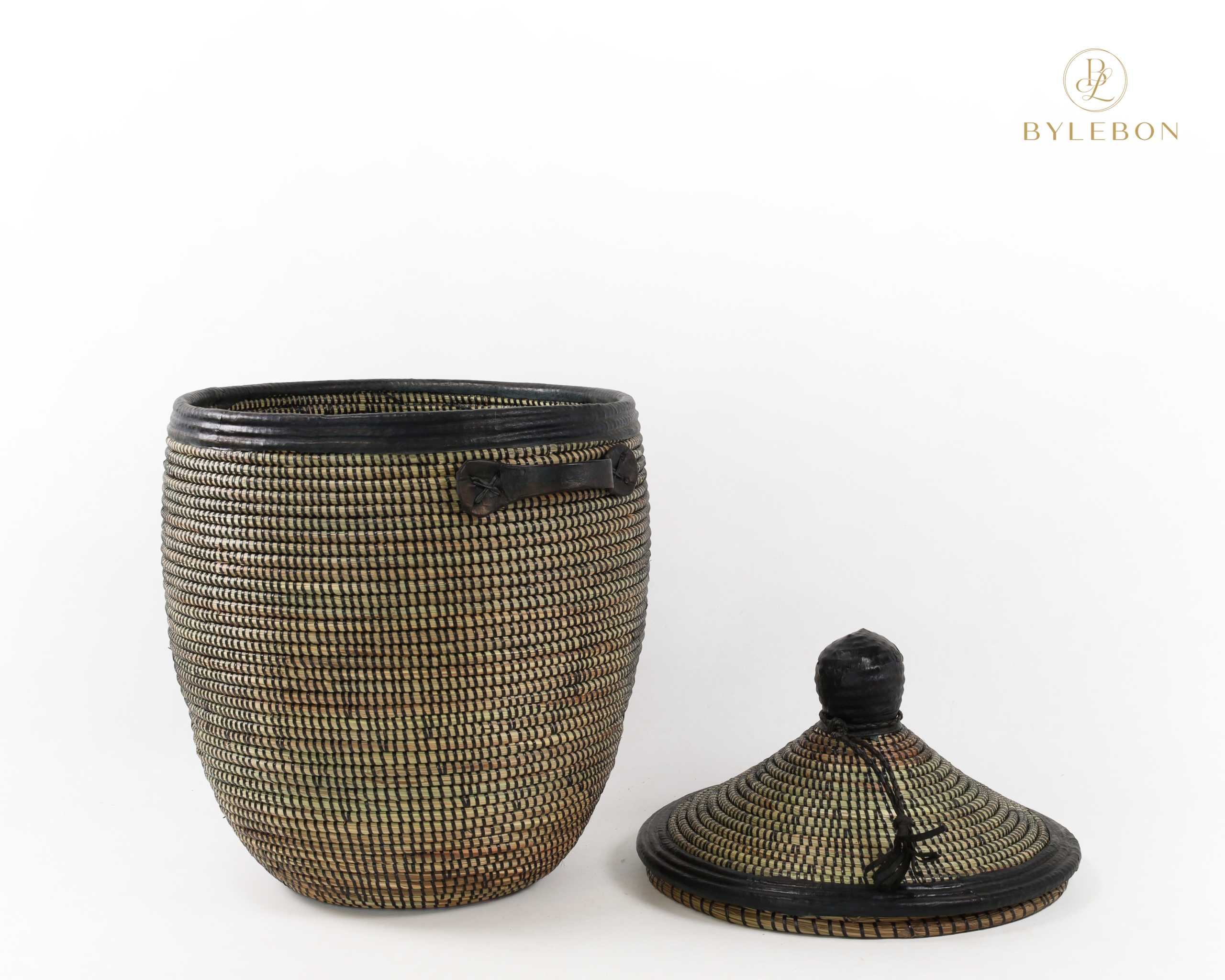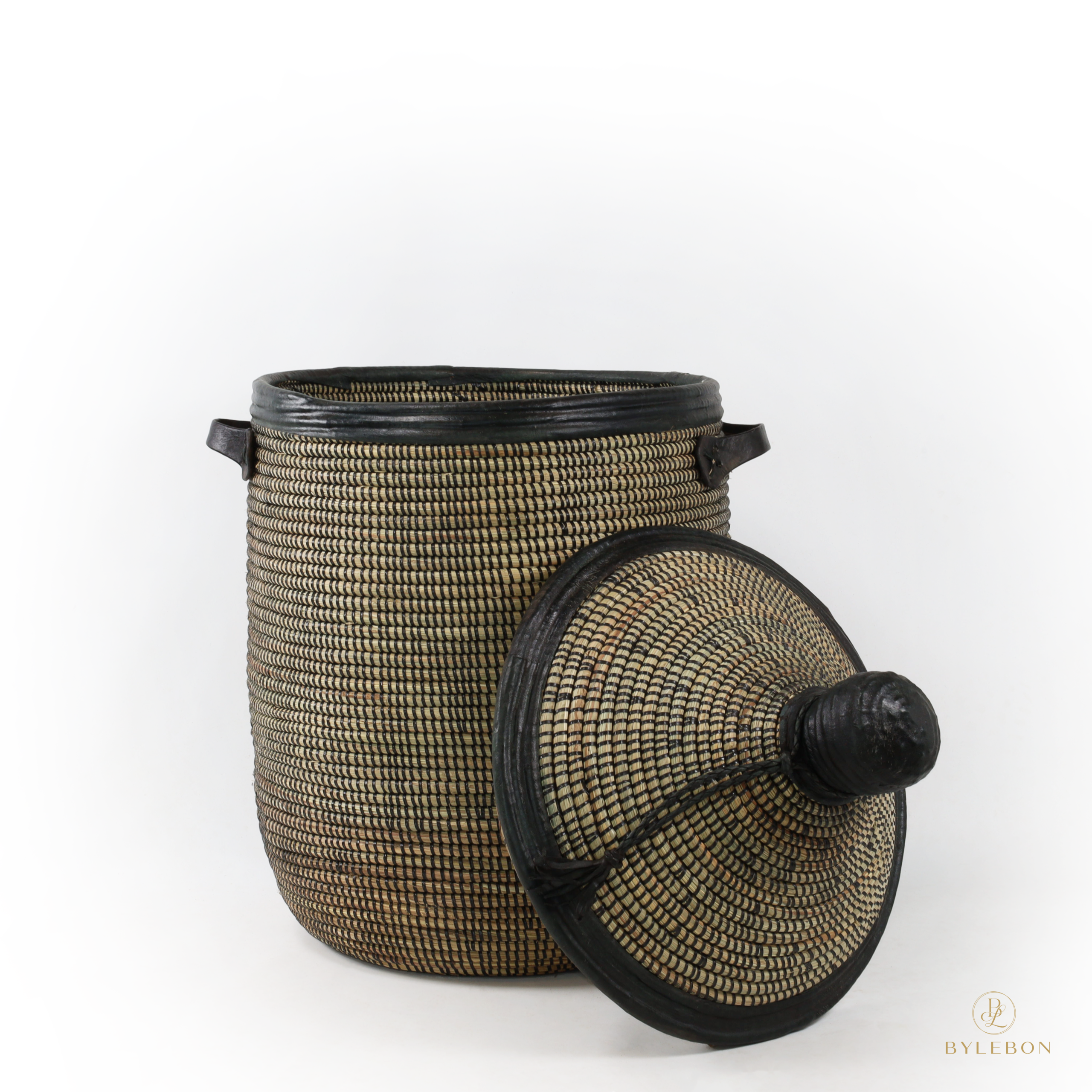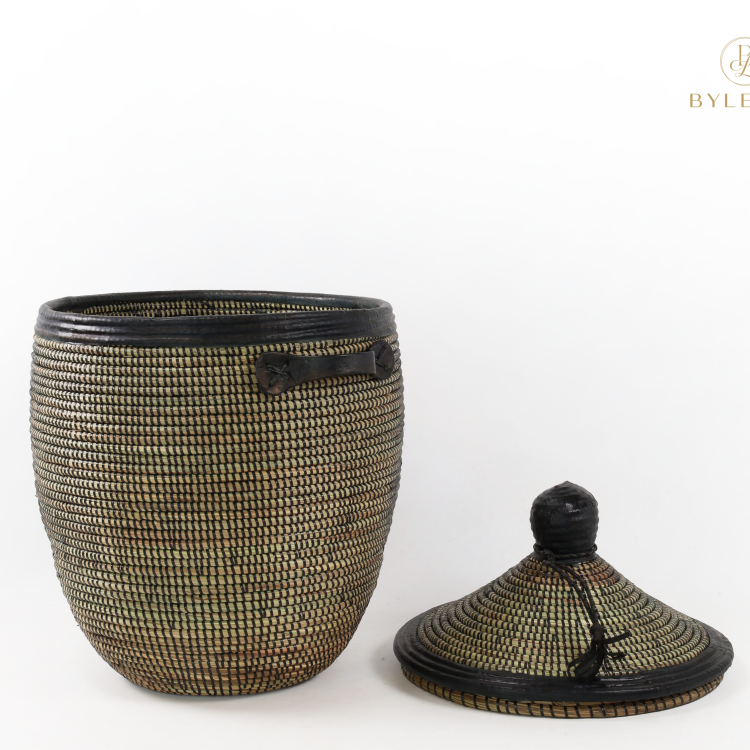 Grand panier en roseau noir avec finition en cuir L (copie)