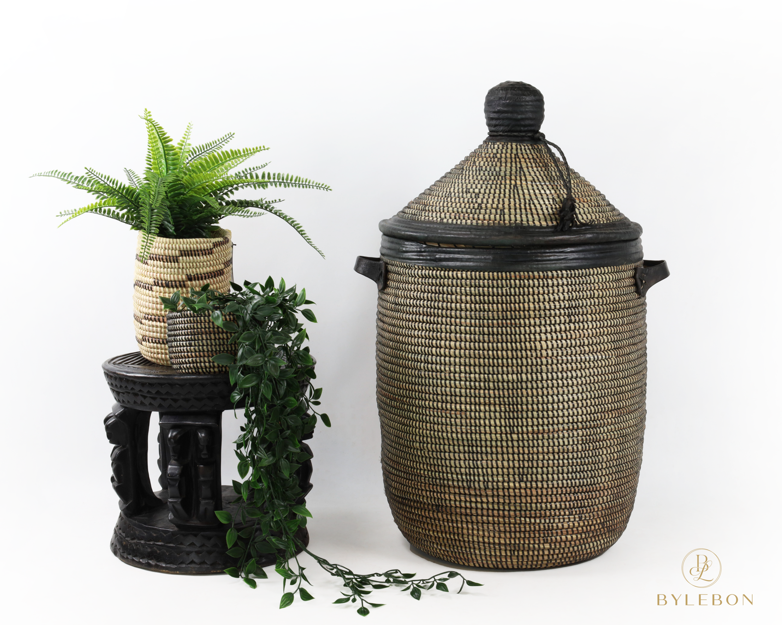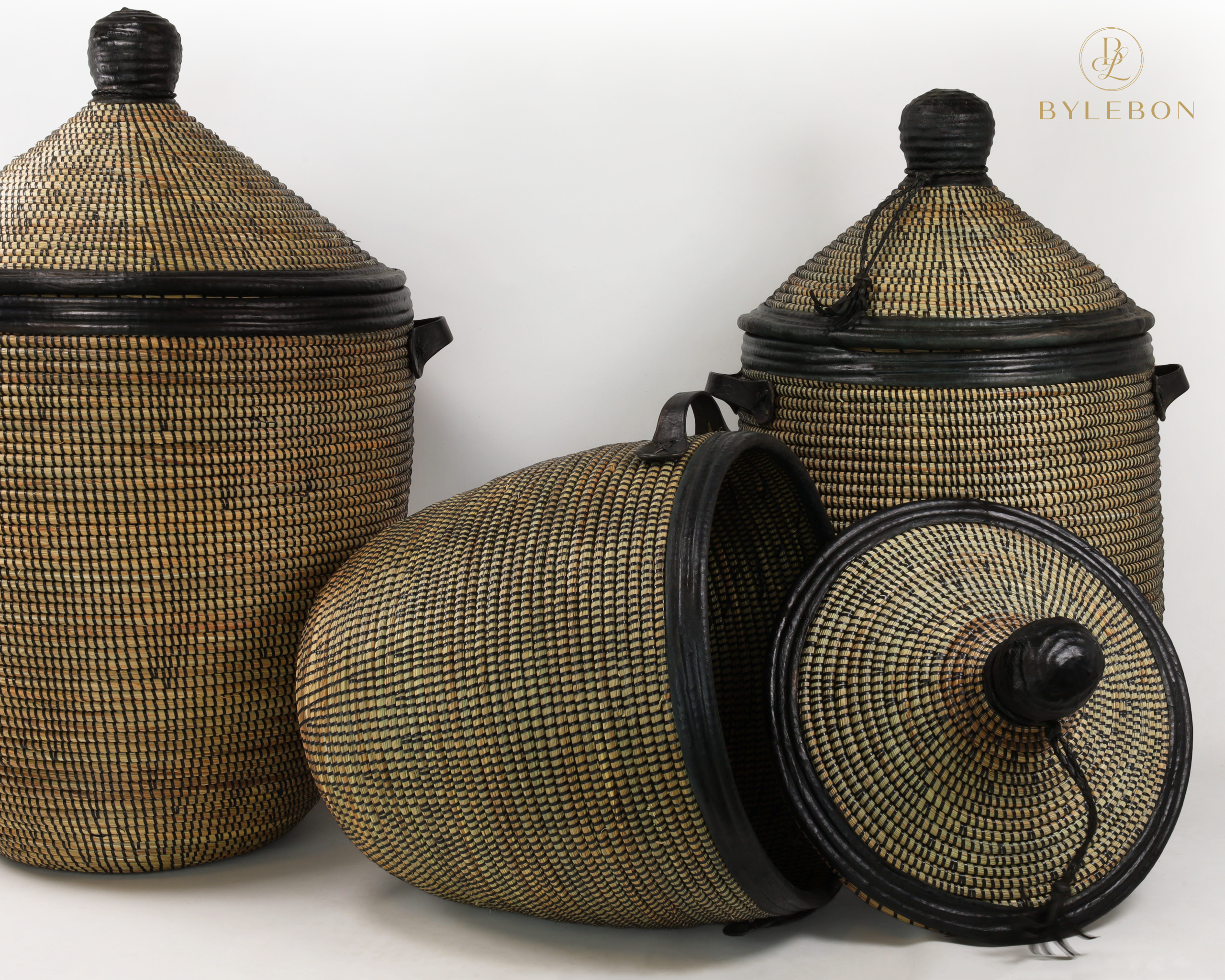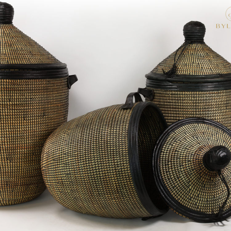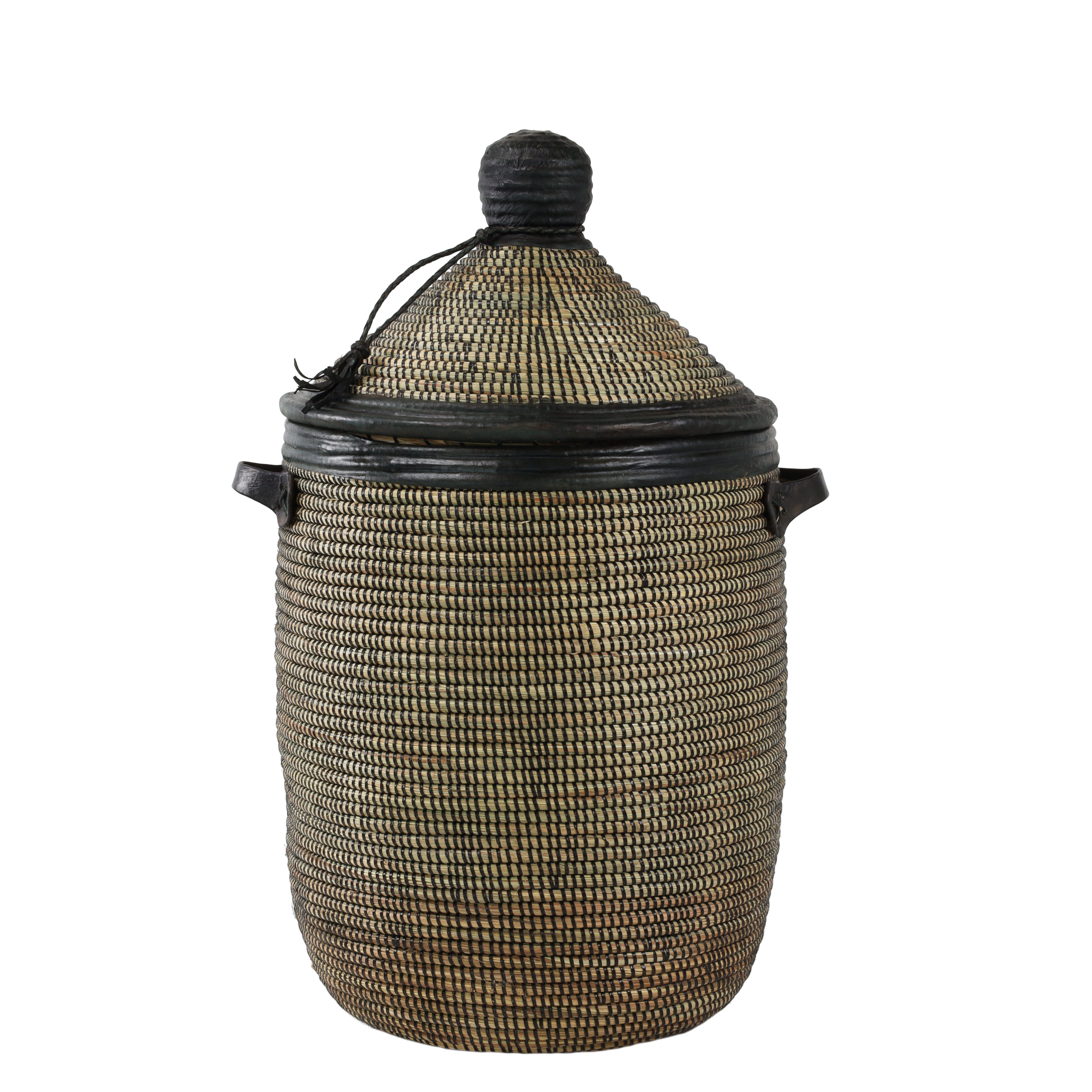 Grand panier en roseau noir avec finition en cuir L (copie)