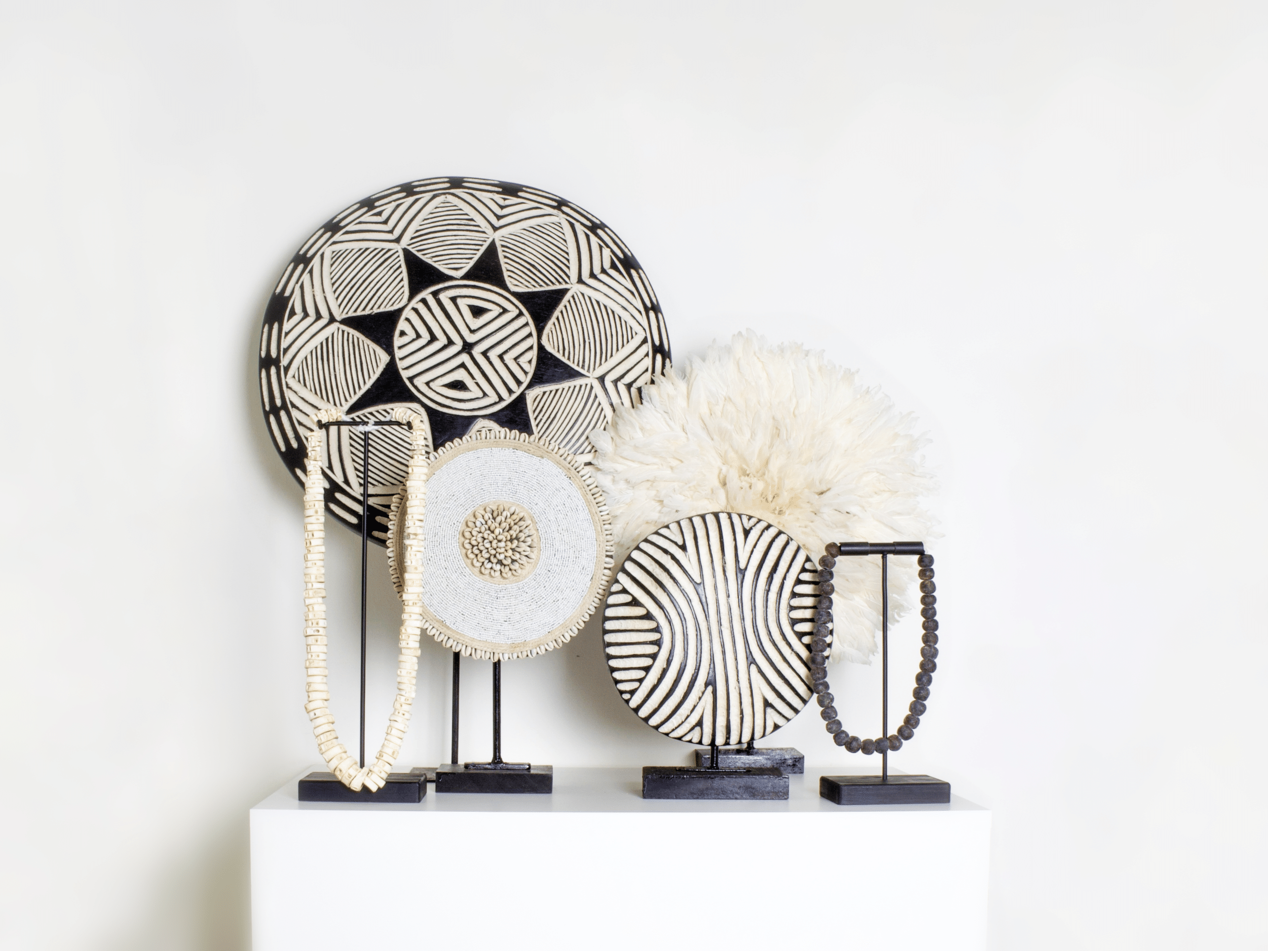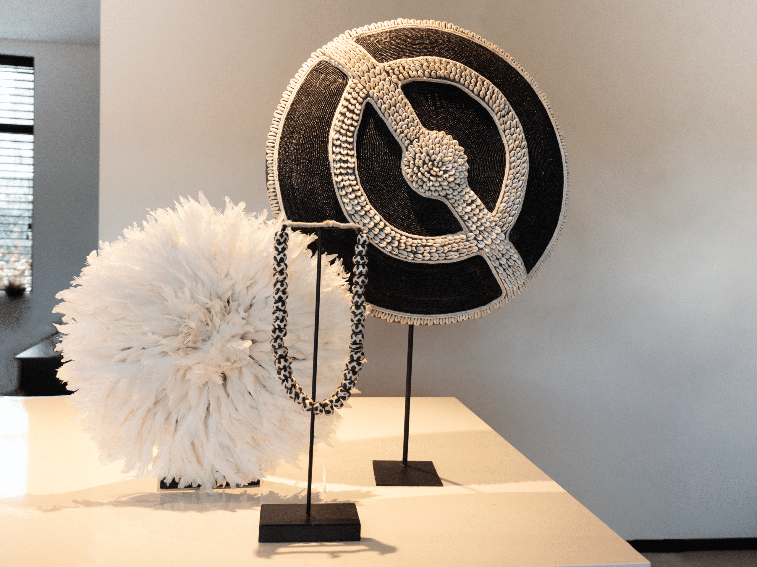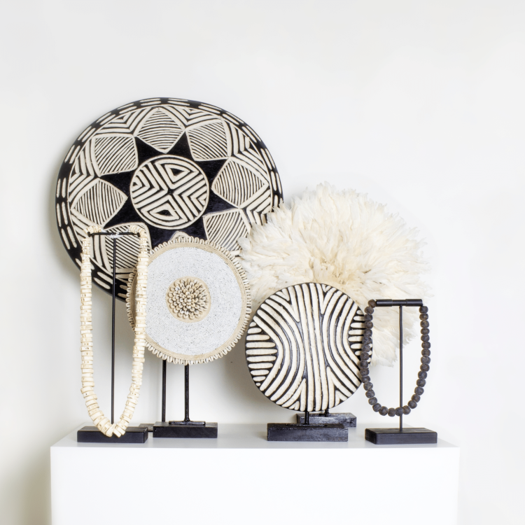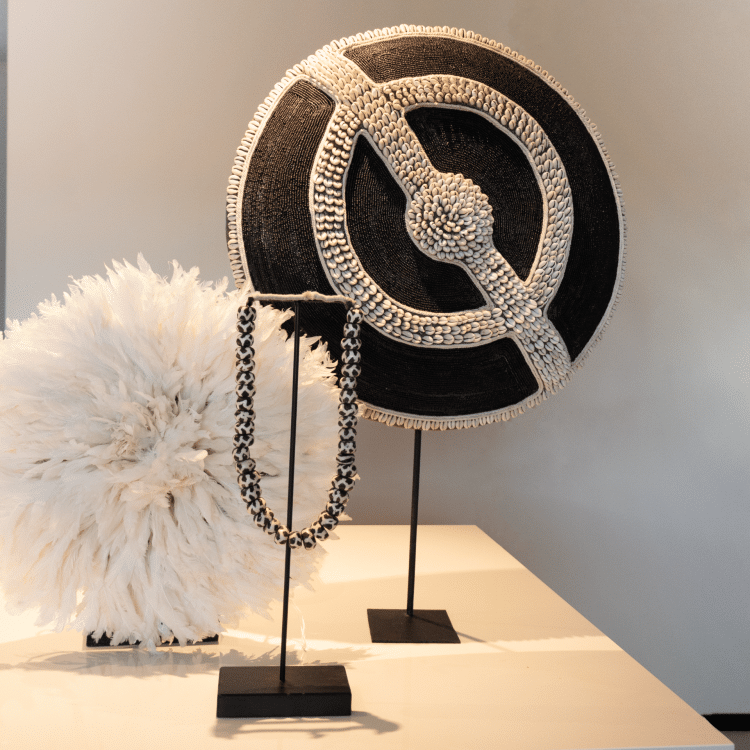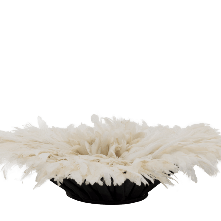 Décorez votre intérieur avec le Juju Blanc, une magnifique pièce faite à la main, disponible en différentes tailles. Le Juju Blanc, une œuvre d’art traditionnelle camerounaise, respire une simplicité pure avec son coloris blanc monochrome, ce qui lui confère un attrait visuel indéniable.