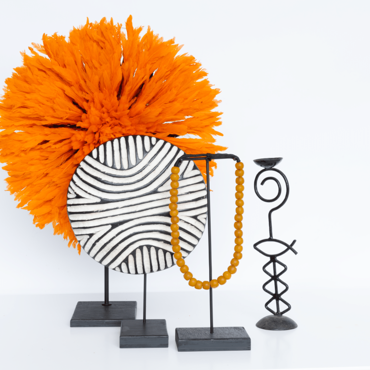 Découvrez nos Juju oranges uniques faits à la main par des artisans camerounais et ajoutez une touche de leur culture à votre intérieur. Veuillez noter que les dimensions peuvent varier jusqu’à environ 10 %.