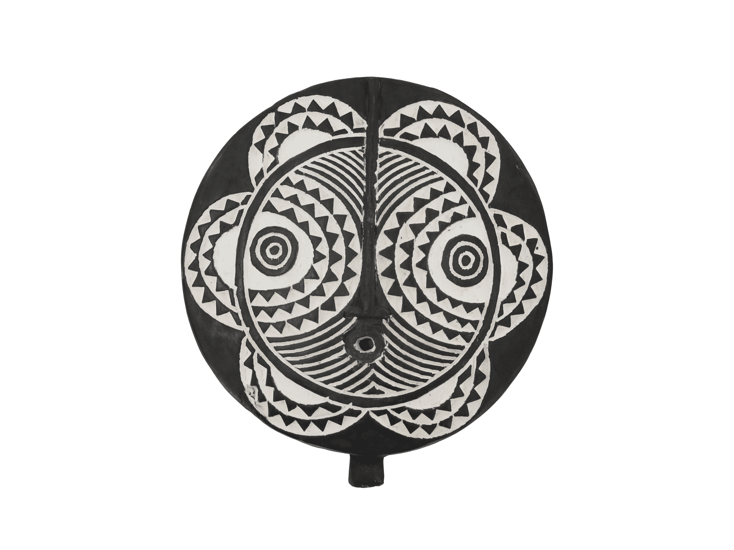 Le masque solaire Sandimisso, associé à la tribu Bobo, est utilisé lors de rituels de protection ou de purification et lors de funérailles. La tribu Bobo est originaire de Bobo-Dioulasso, au nord-est du Burkina Faso, et de certaines parties du Mali, en Afrique de l’Ouest. Les Bobo croient que le masque protège leur famille et leur village des mauvais esprits et favorise le mariage et la fertilité. Bien que le masque soit appelé « masque solaire », il représente en réalité un animal nocturne, comme un hibou ou un oiseau de nuit, ce qui explique les yeux exorbités et le « nez » en forme de bec.