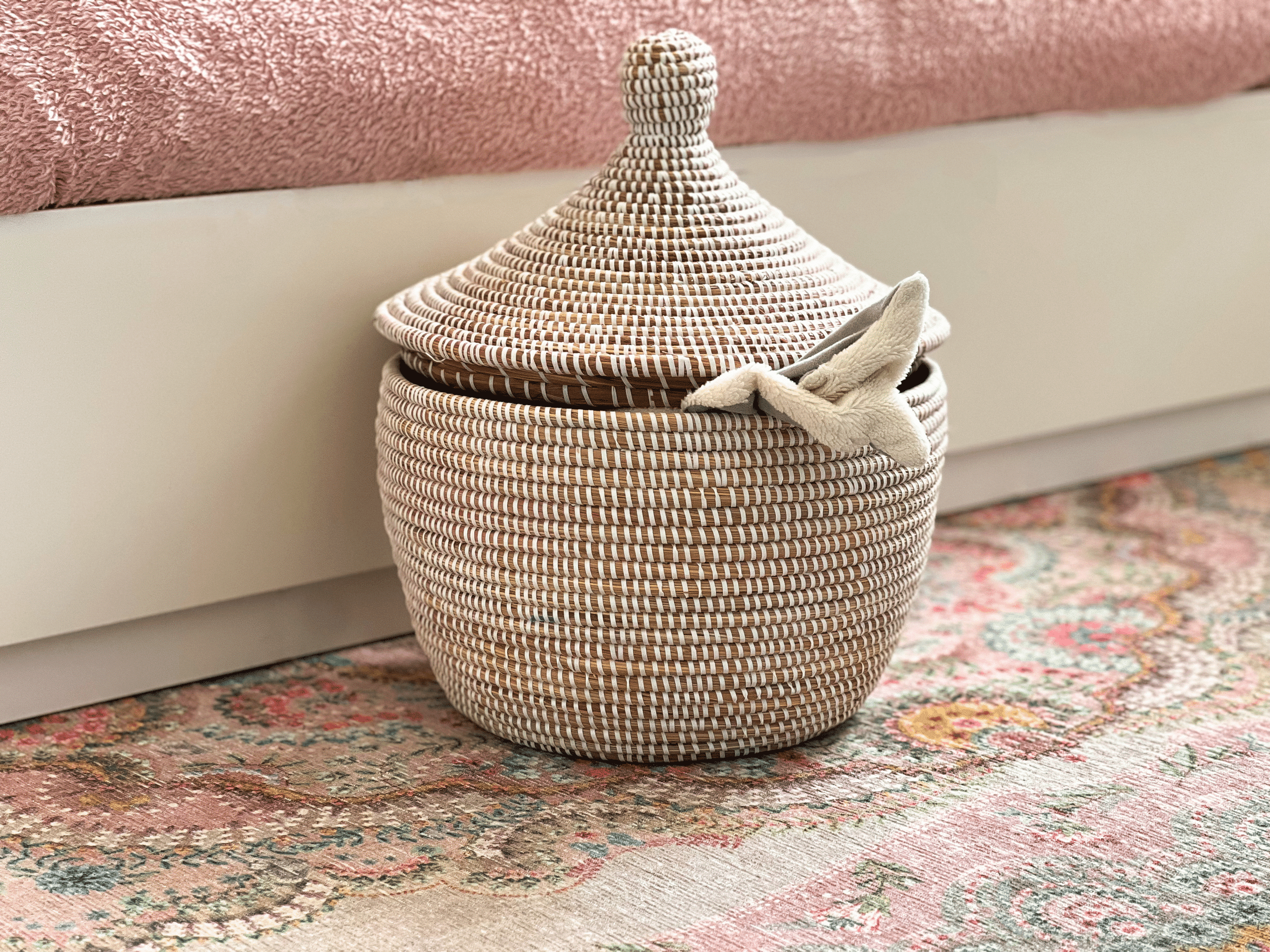 Chaque panier est fait à la main et unique, les dimensions peuvent donc varier. Cela contribue à leur beauté et à leur caractère uniques.