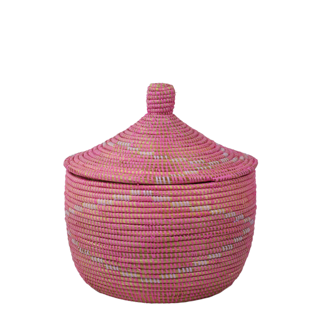 Le panier est fait à la main à partir de matériaux naturels (légers mais robustes) et convient pour ranger des jouets, des plaids, des coussins ou d’autres articles en vrac. Grâce au couvercle, le contenu reste bien caché, tandis que la couleur rose apporte une touche chaleureuse et ludique au salon ou à la chambre d’enfant.