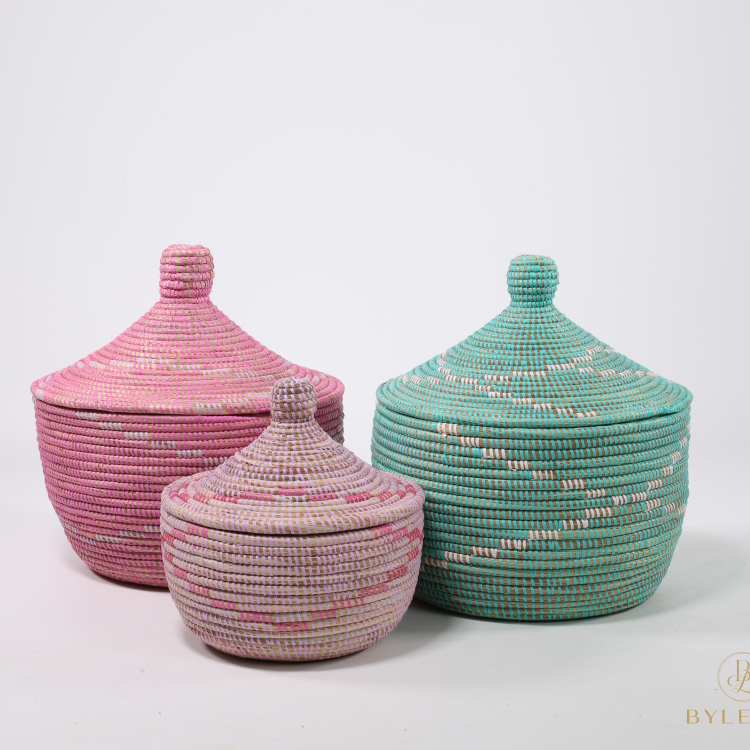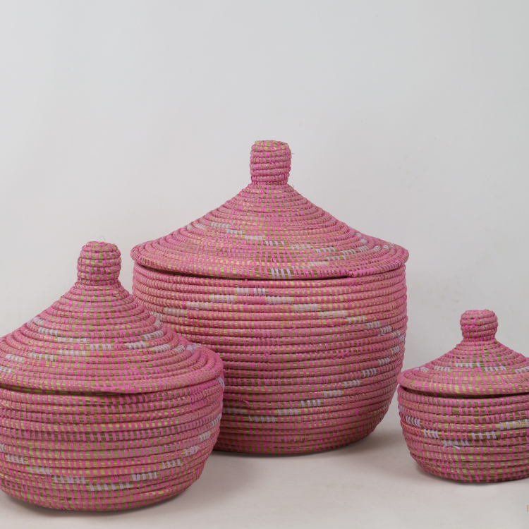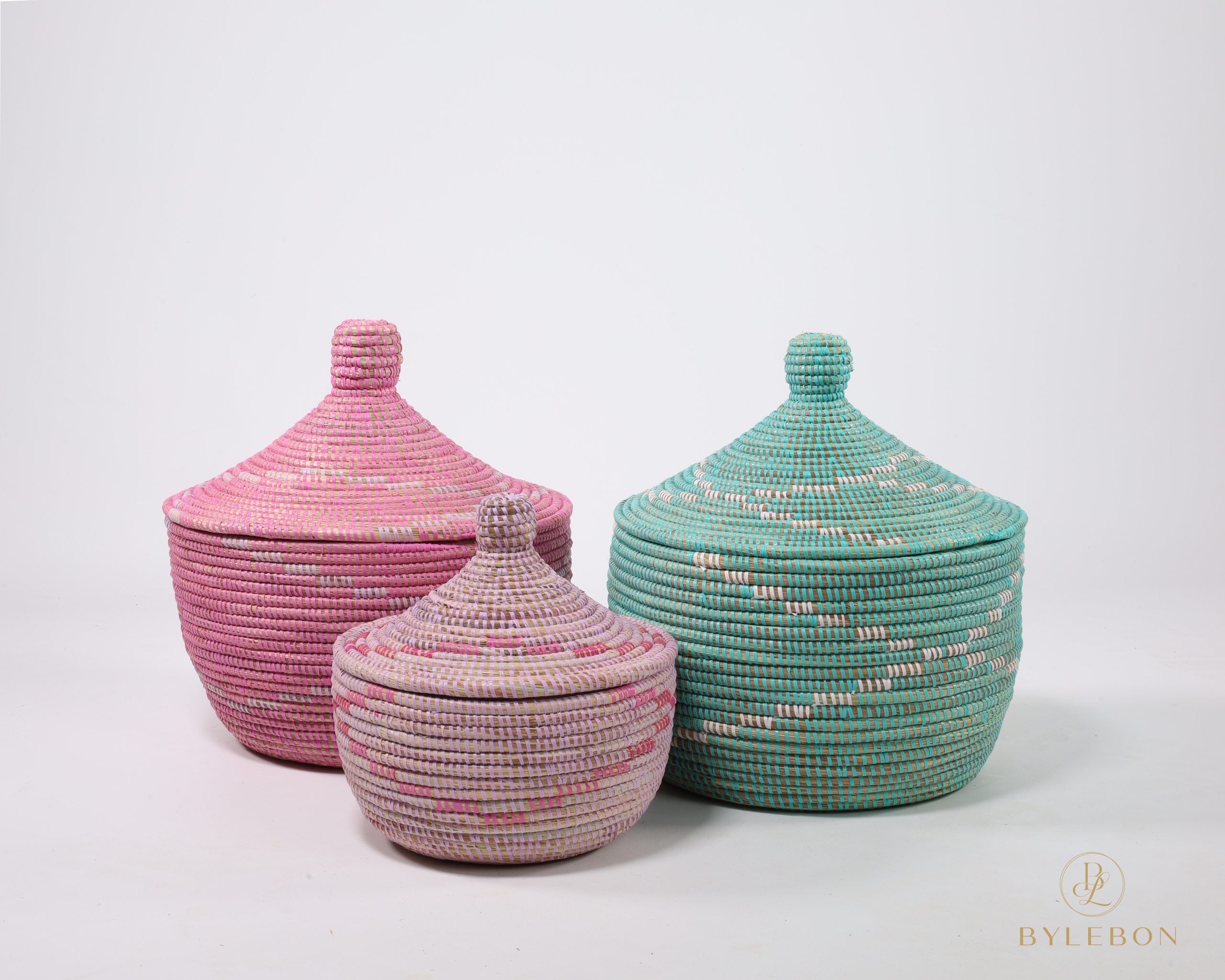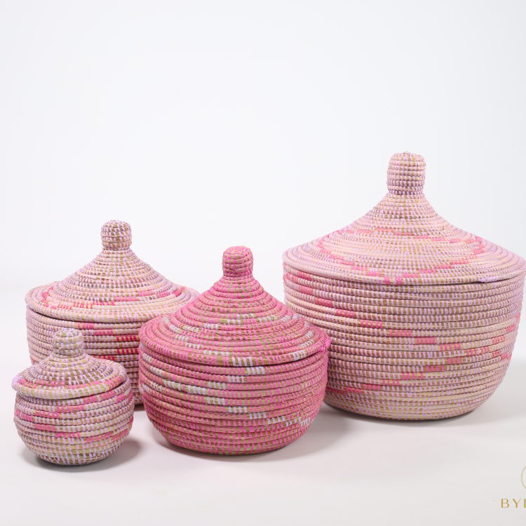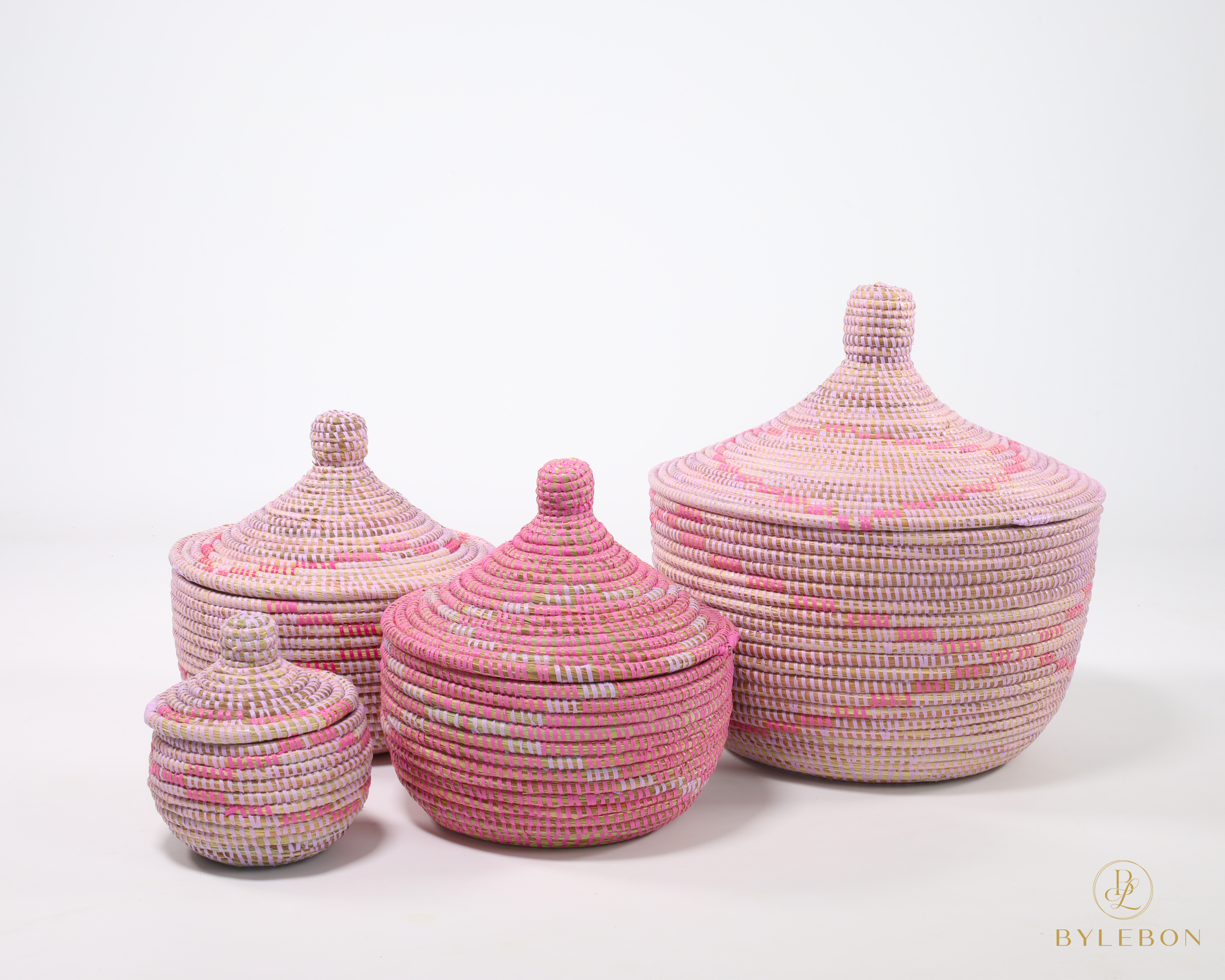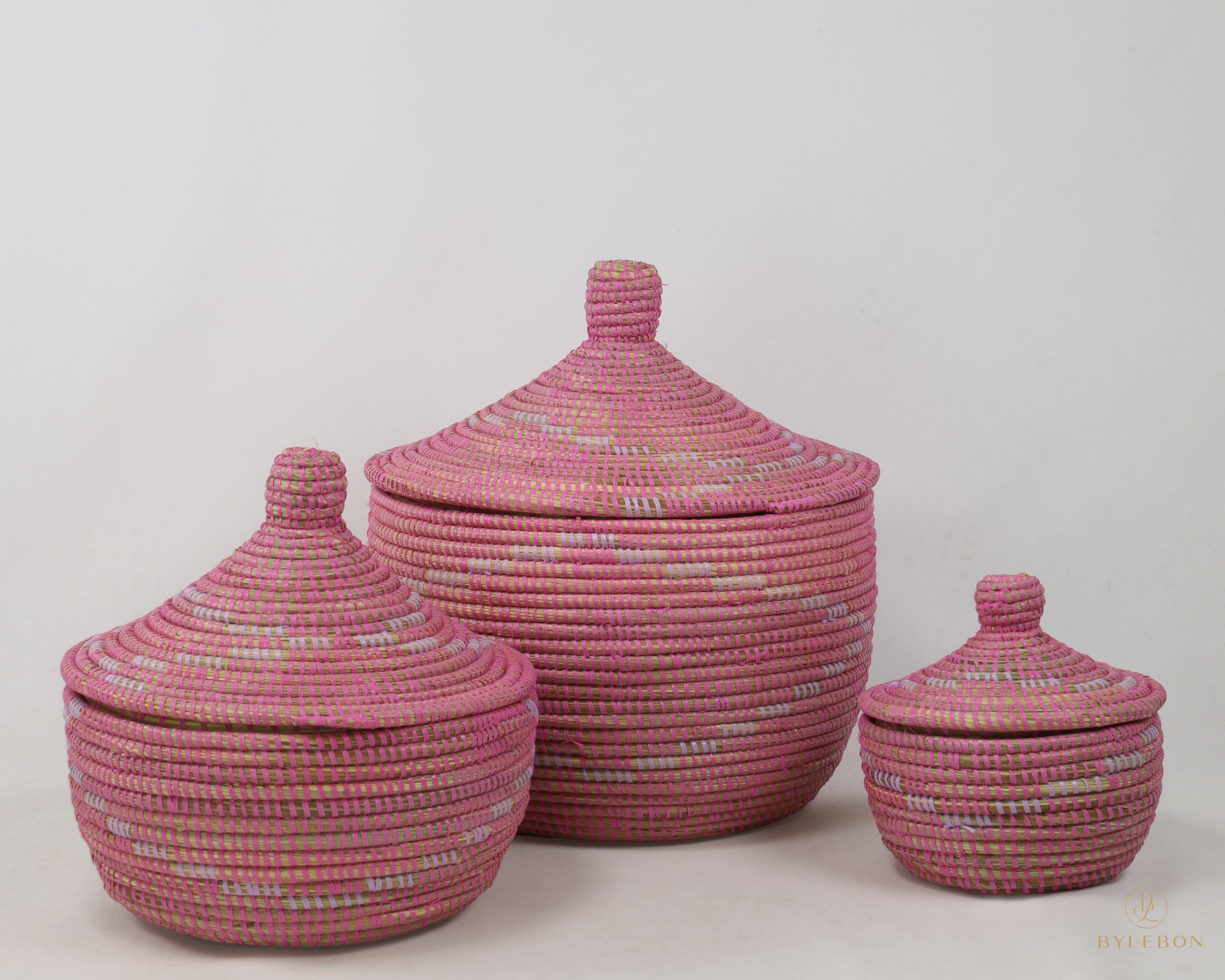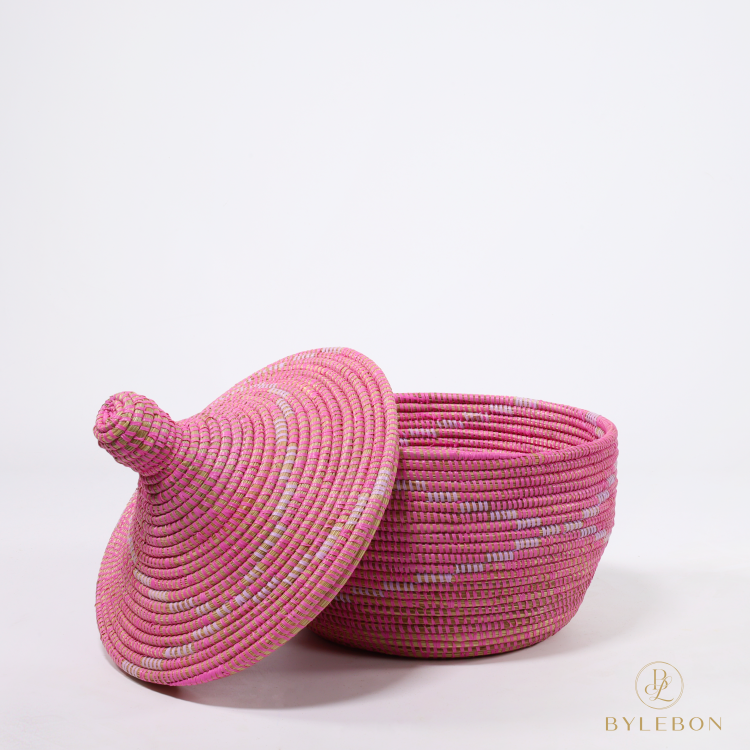 Ce panier Tajine – Rose est un modèle de taille moyenne avec une apparence douce et féminine. La forme tajine caractéristique est renforcée par un motif croisé raffiné dans une teinte plus claire, ce qui donne au panier une profondeur et un détail supplémentaires sans paraître chargé. Avec un diamètre d’environ 36 cm et une hauteur d’environ 41 cm, ce format est idéal pour les petits espaces.