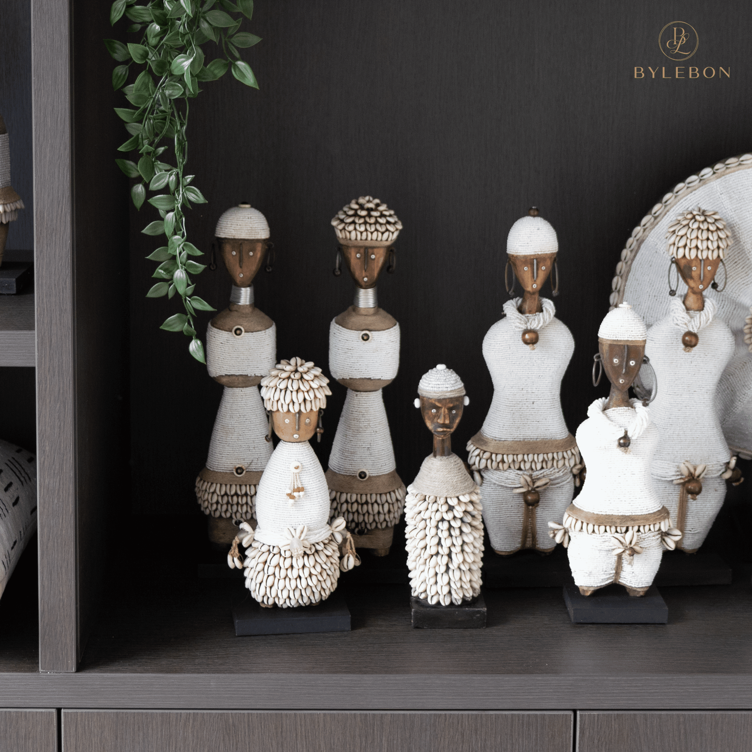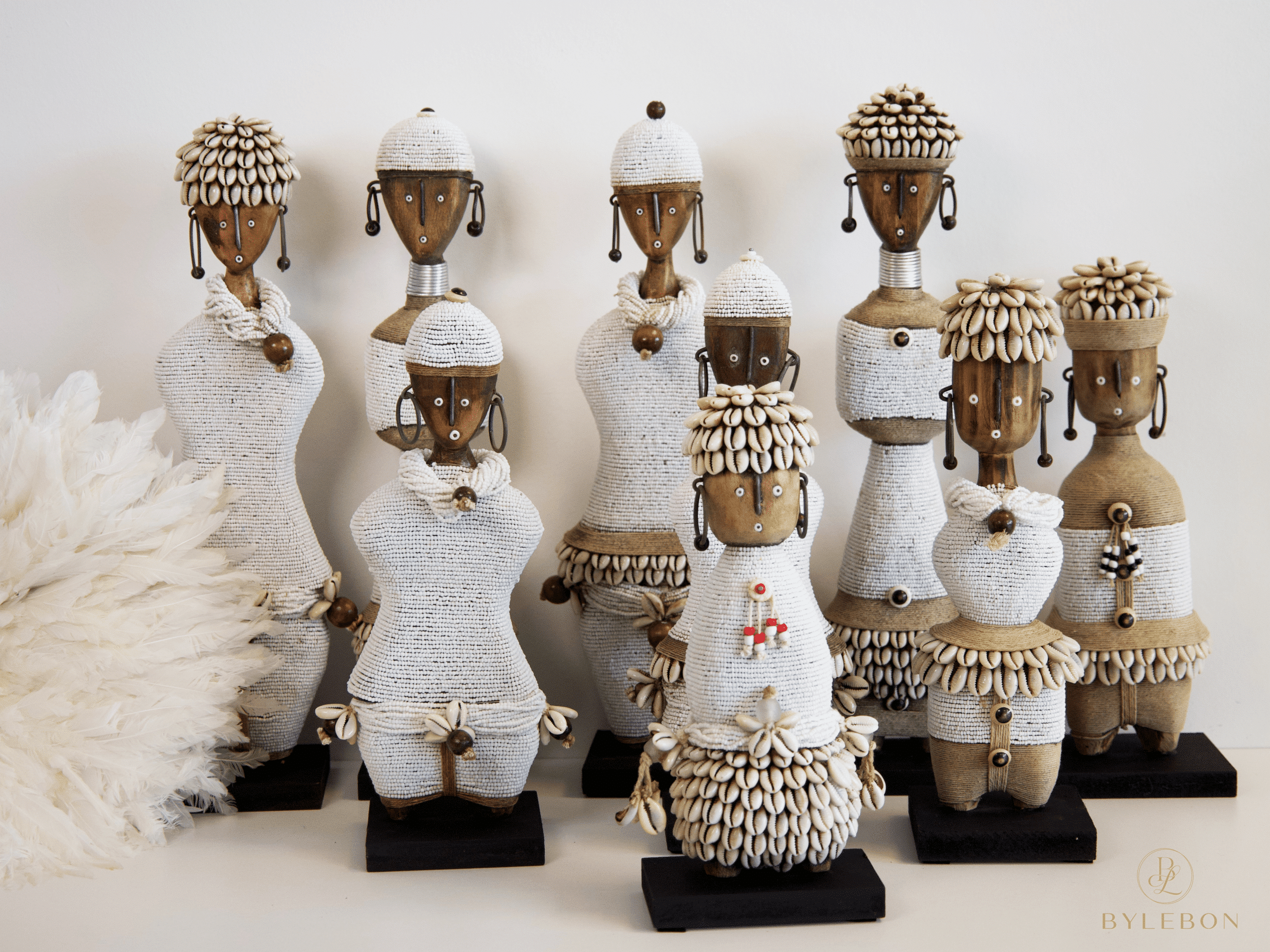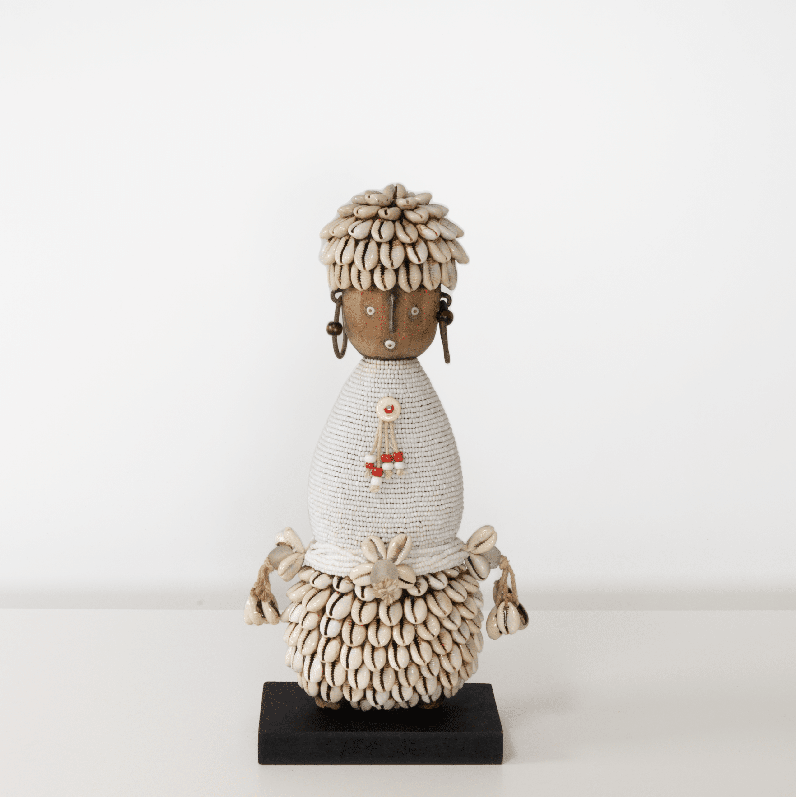 Cette petite poupée Namji authentique – E10 (Blanc) est décorée à la main avec des cauris, des perles, de la corde et des détails métalliques. C’est un symbole élégant de bonheur et de fertilité, parfait comme pièce de décoration unique ou cadeau spécial.