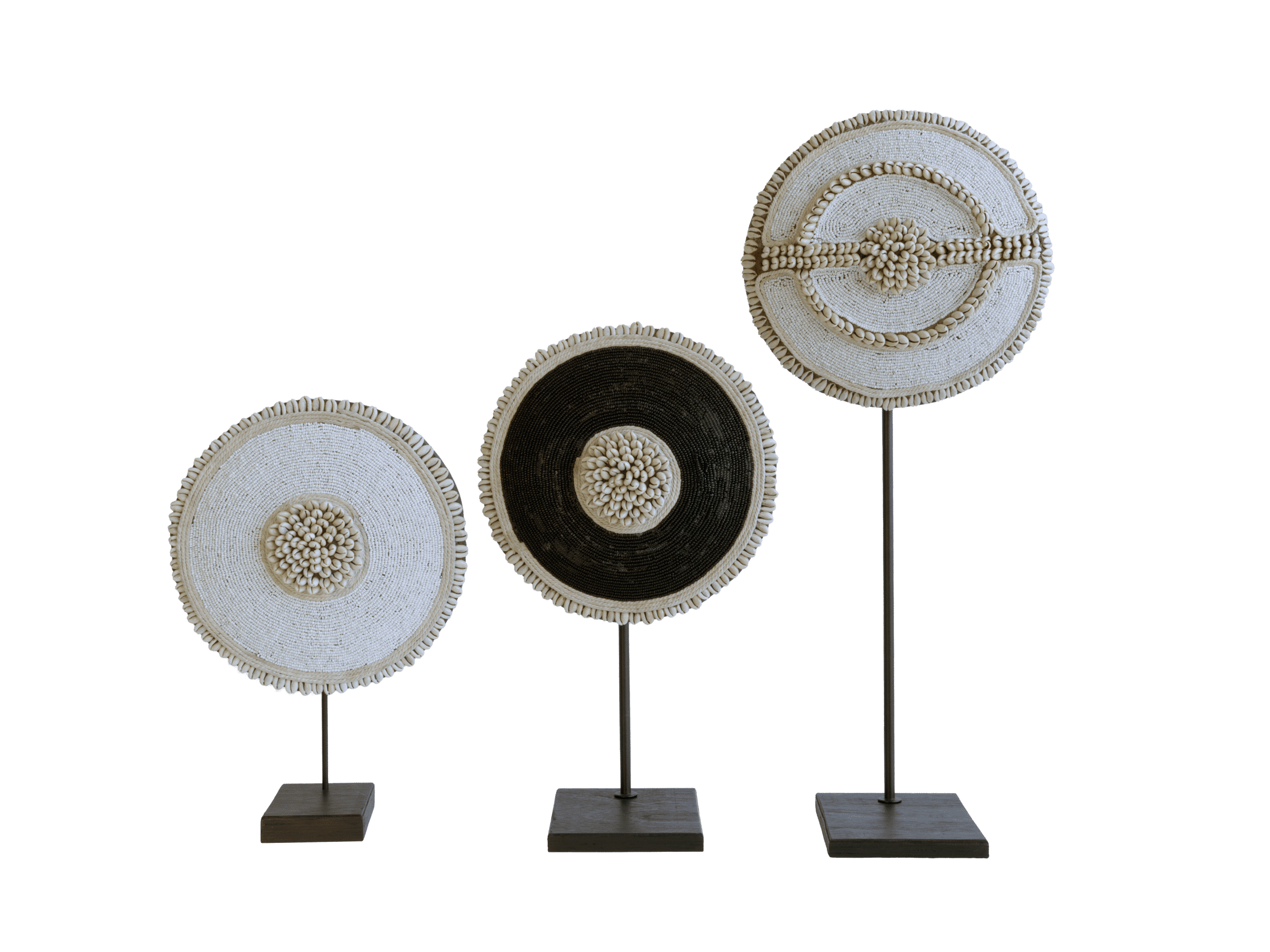- Boucliers Bamileke : Réputés pour leur importance historique et culturelle, ces boucliers sont une véritable pièce maîtresse dans chaque maison.